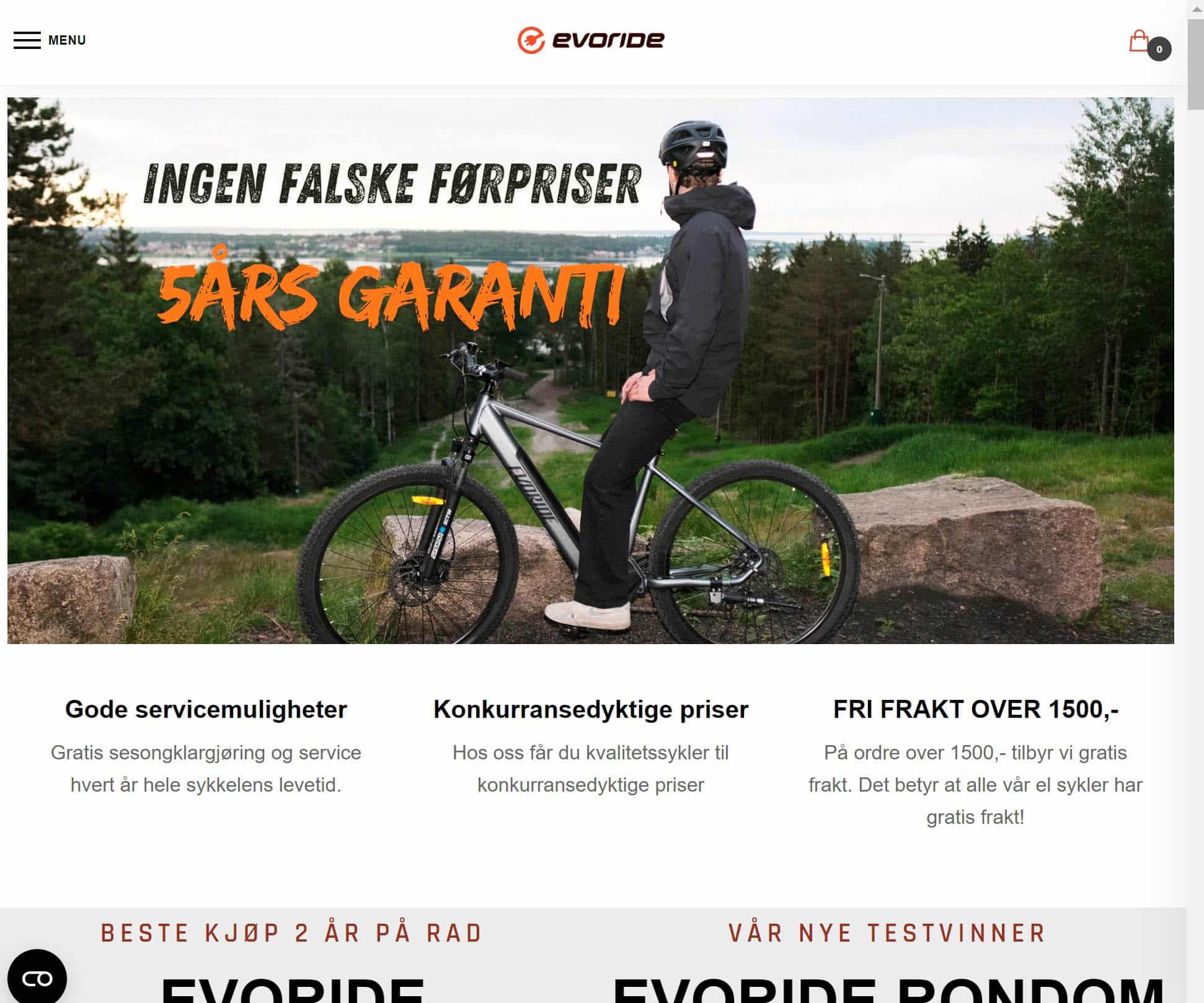 Evoride tilbyr gode servicemuligheter med gratis sesongklargjøring og årlig service for hele sykkelens levetid. De har også konkurransedyktige priser på kvalitetsprodukter og tilbyr fri frakt på ordre over 1500 kroner.