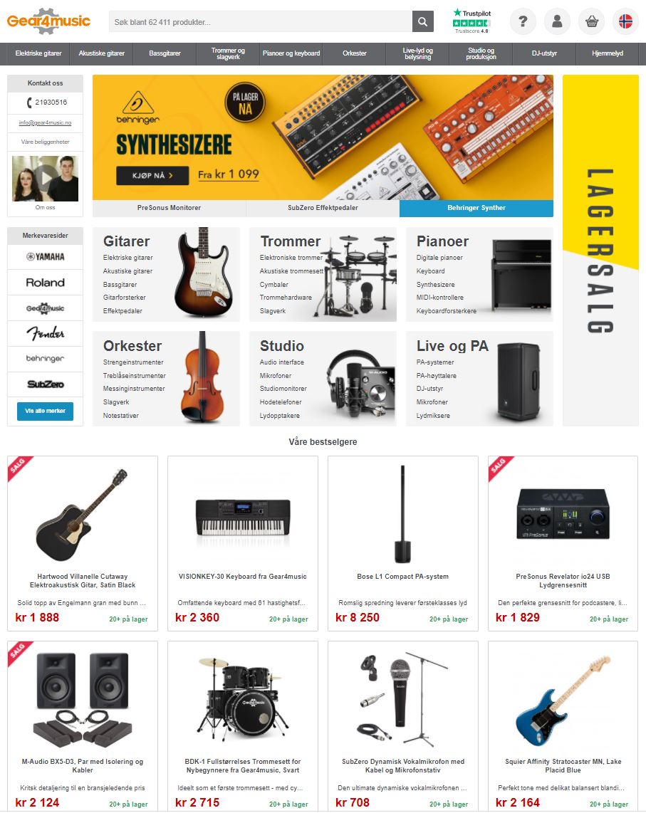 Nettbutikk med over tusenvis av musikk produkter. Betal med Klarna og PayPal. Gode tilbakemeldinger fra norske kunder på Trustpilot.