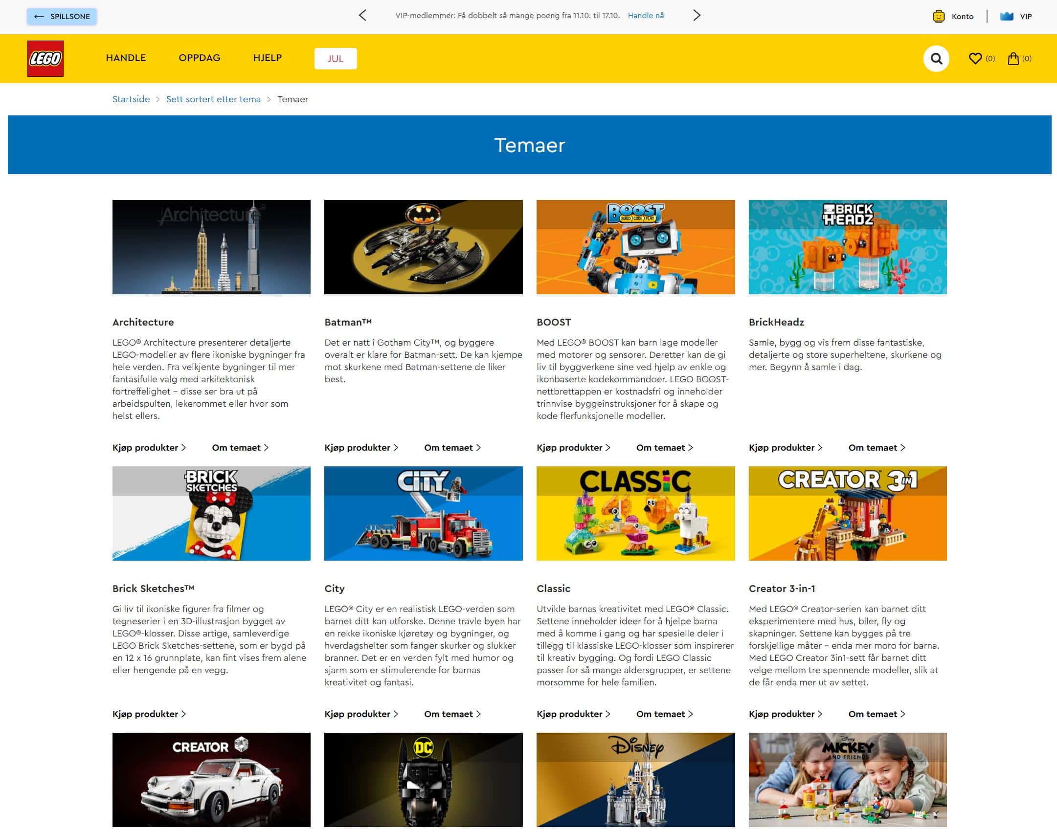 Den offisielle nettbutikken til LEGO har massevis av morsomme LEGO produkter, tilleggsprodukter og inspirasjon for små og store byggere. Her finner du ofte eksklusive LEGO-sett som man ikke finner i andre butikker. Siden grunnleggelsen i 1932, streber de alltid å overgå sine kunders forventninger med hensyn til kvalitet og service i LEGO-merkevaren.