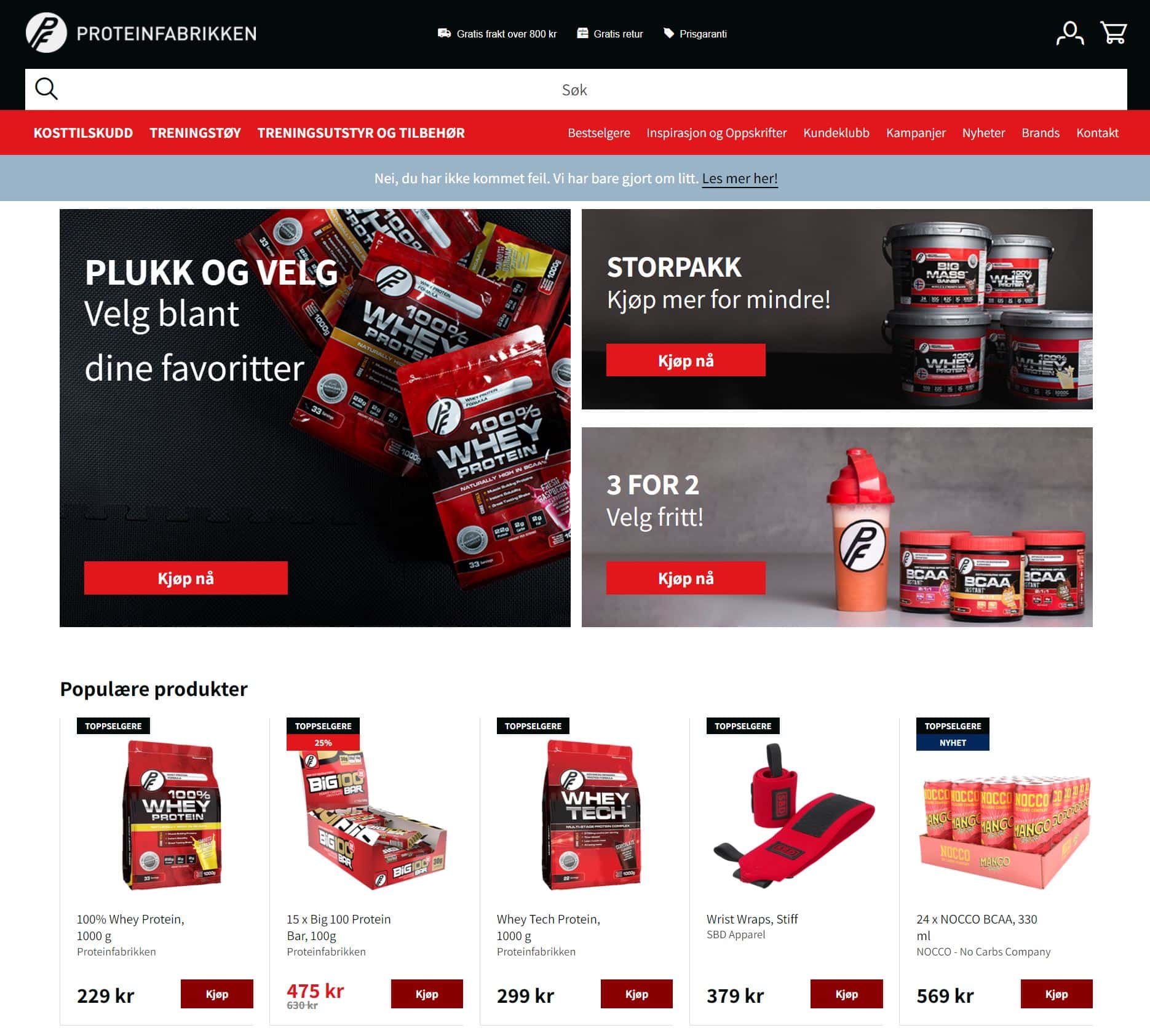 Proteinfabrikken er både produsent, distributør og leverandør av sportstilskudd og næringskonsentrater. Her får du kosttilskudd, matvarer, treningstøy, treningsutstyr og annet treningstilbehør.